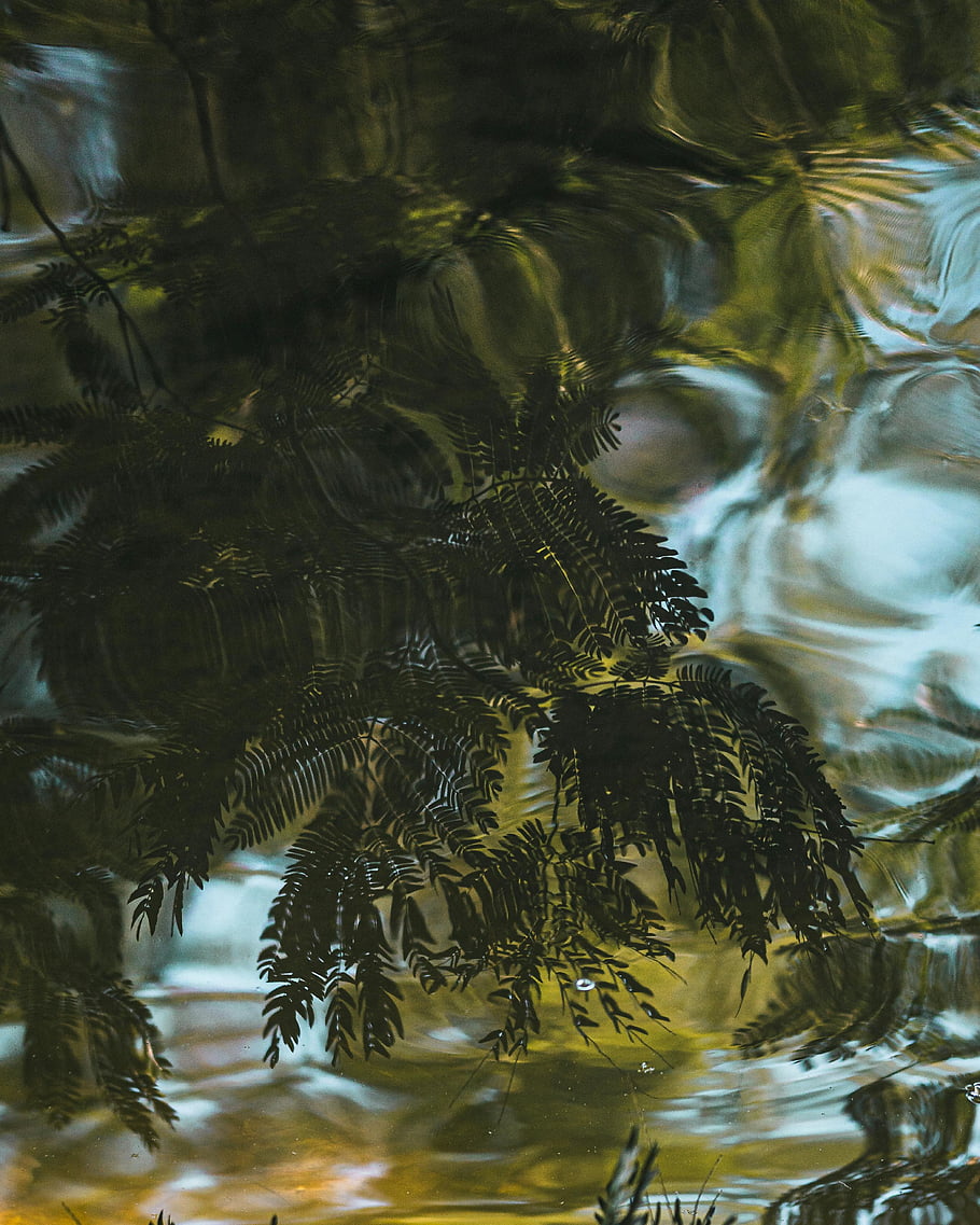 vodní odraz, odraz listí, klidná voda, abstraktní vzory, přirozené vzory, Reflexe listů, Reflexe přírody, vodní hladiny, klidné scény, přírodní abstrakt