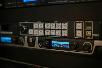 audio zesilovač, detailní fotografie, audio zařízení, digitální ovládání, Nastavení studia, vstupy, funkční tlačítka, VX4, U-DISK, hdmi, vga