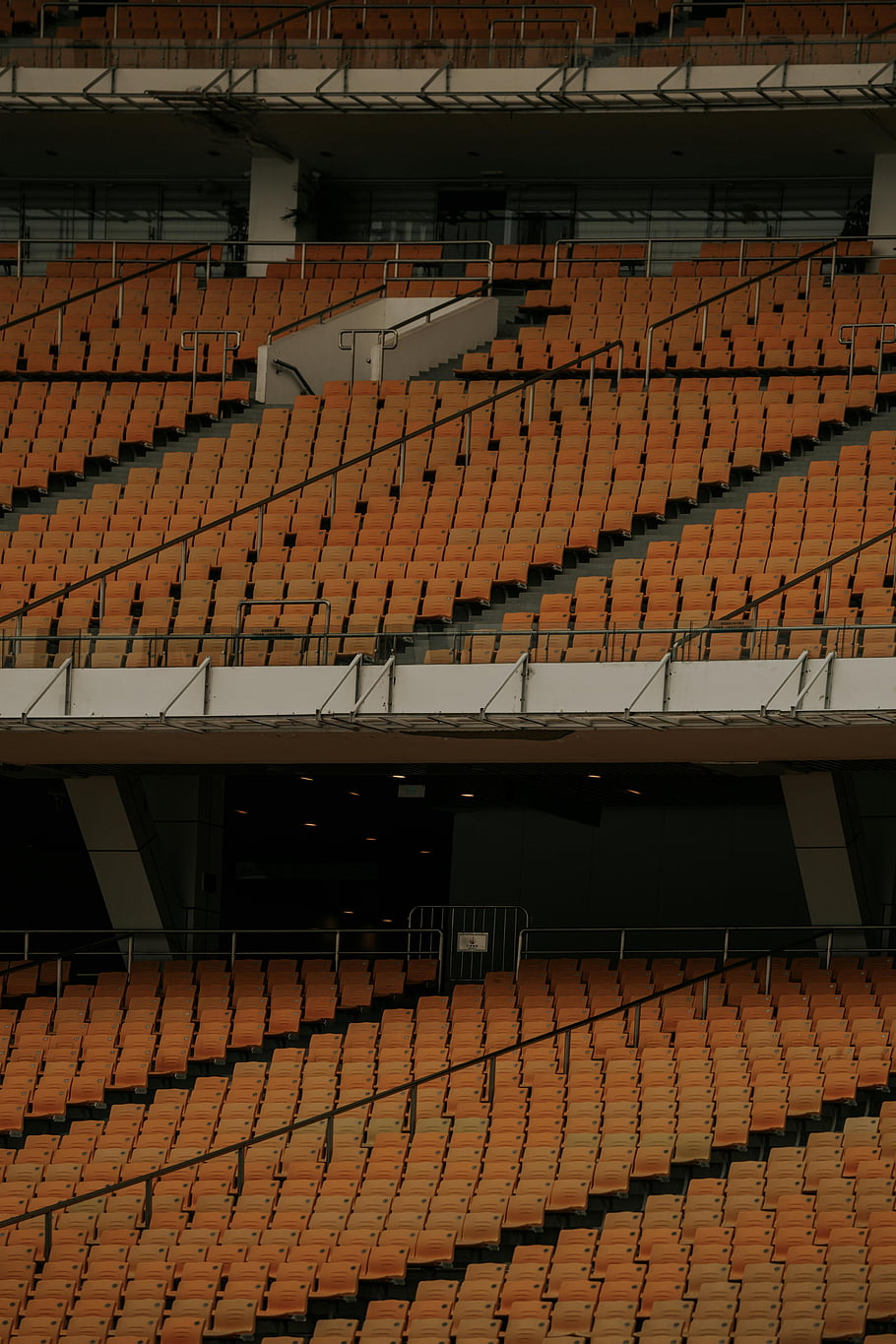prázdná místa na stadionu, svislý výstřel, prázdný tribuna, řady sedadel, děsivá atmosféra, sezení na stadionu, prázdná aréna, opuštěný stadion, prázdné bělidla, svislý obrázek, prázdné sportovní hřiště -