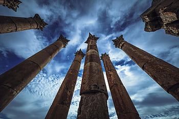 Starověké římské sloupce, chrám artemis, jerash, Jordán, Nadčasová architektura, historické místo, starověké zříceniny, římské architektury, kulturní dědictví, Historické sloupce, Dějiny Blízkého východu