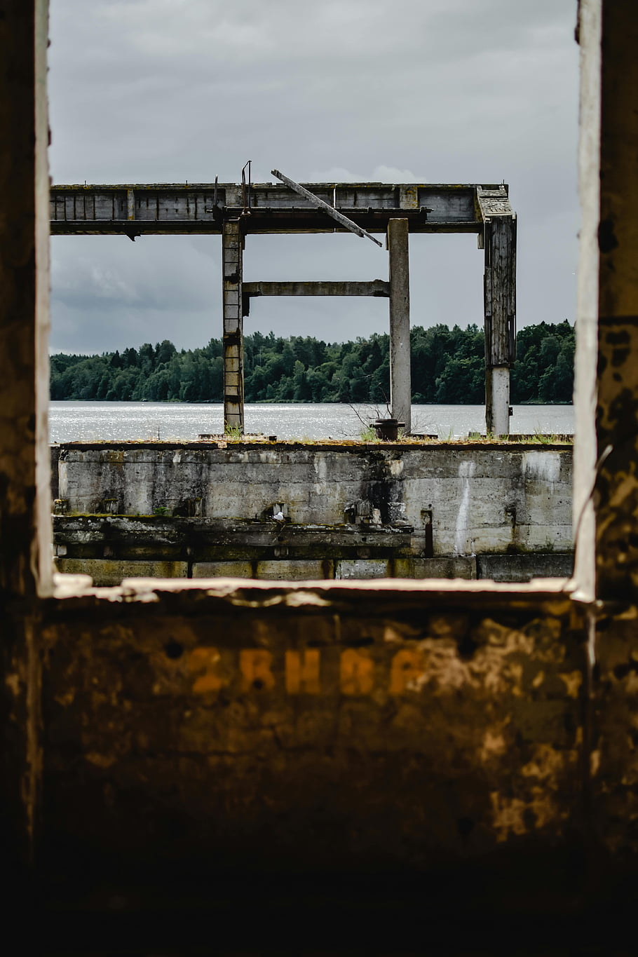 opuštěné místo, tělo z vody, rustikální rámec, Estonská vodní cesta, Obklopeno zelenou, opuštěné budovy, pohled na vodu, příroda pozadí, betonová konstrukce, Zarostlá vegetace, průmyslové ruiny