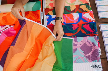 barevná tkanina, Tkanina s látkou, Venkovní tkanina, Barevné vzory, jedinečné textury, detailní tkanina, venkovní zavěšení, textilní textury, zářivé barvy, tkanina design, vzory batikování