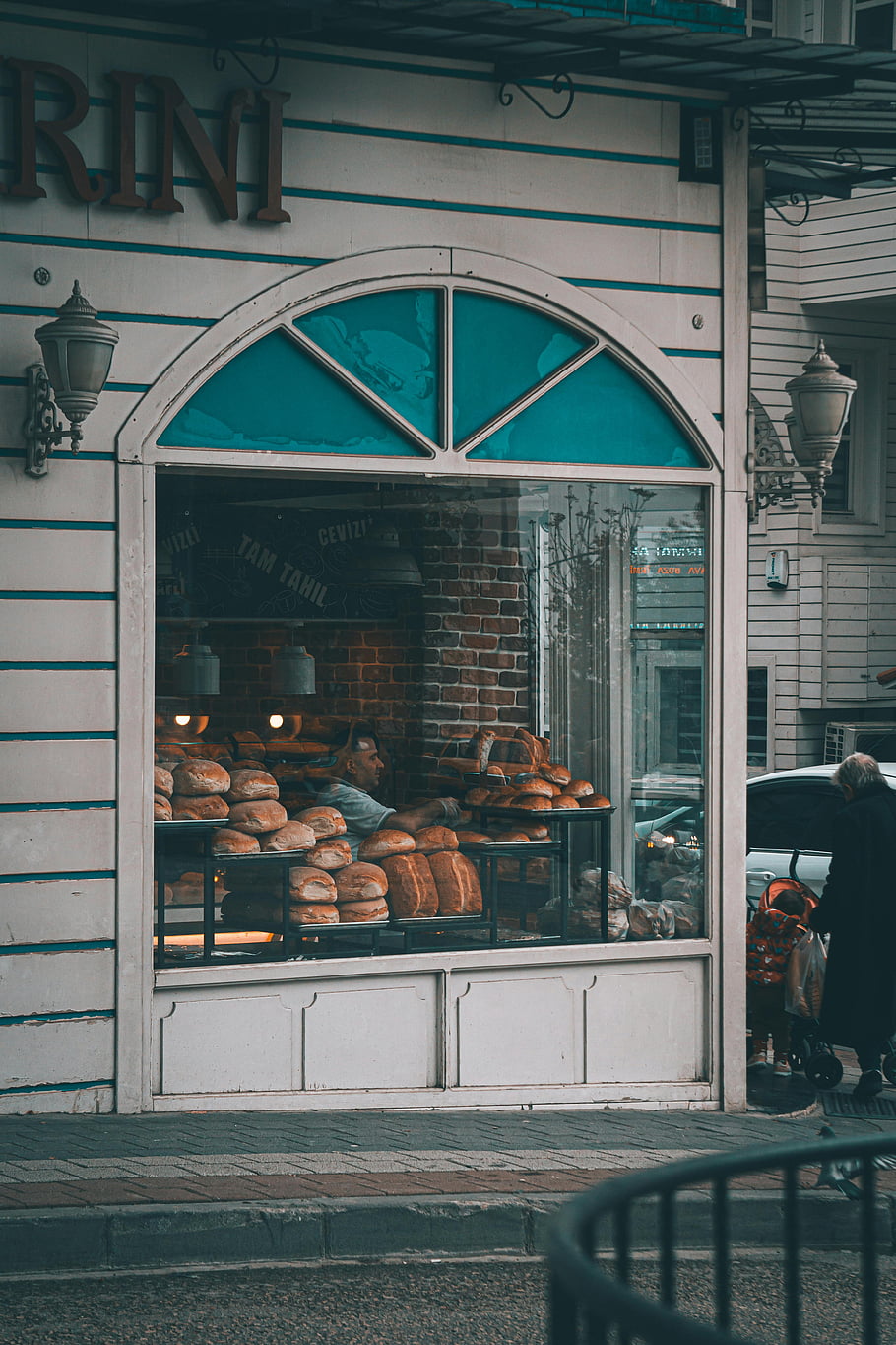 pekařství, zobrazení, Rustikální pekárna, průčelí, obloukové okno, Odrůdy chleba, lahodný chléb, pekařský interiér, zobrazení chleba, Street View, městská pekárna