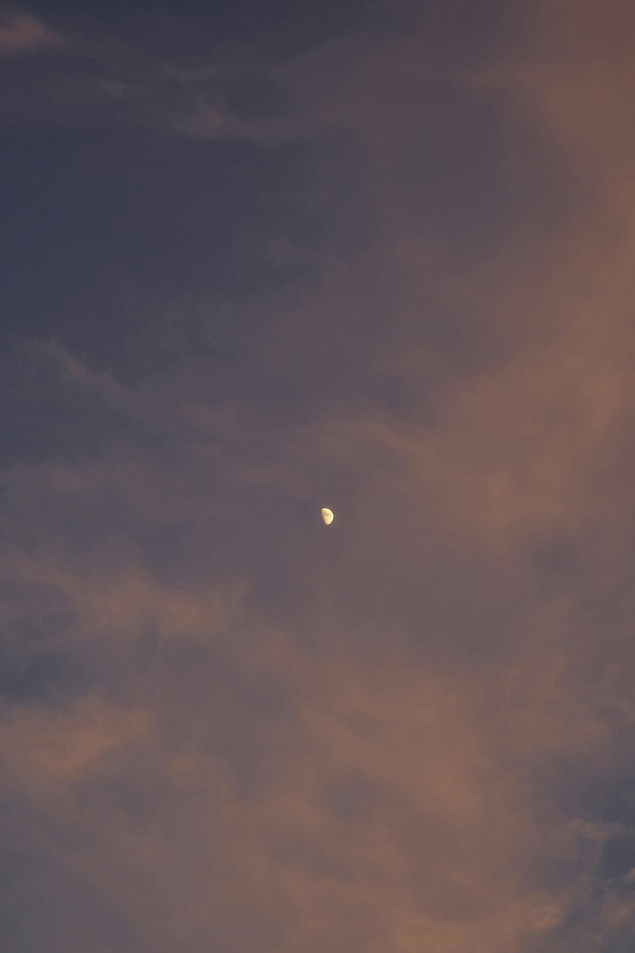 měsíc za mraky, soumraku obloha, klidný večer, klidné scény, Měsíční mraky, Mraky soumraku, večerní obloze, měsíc na obloze, klidný obraz, Mírový večer, Scéna soumraku