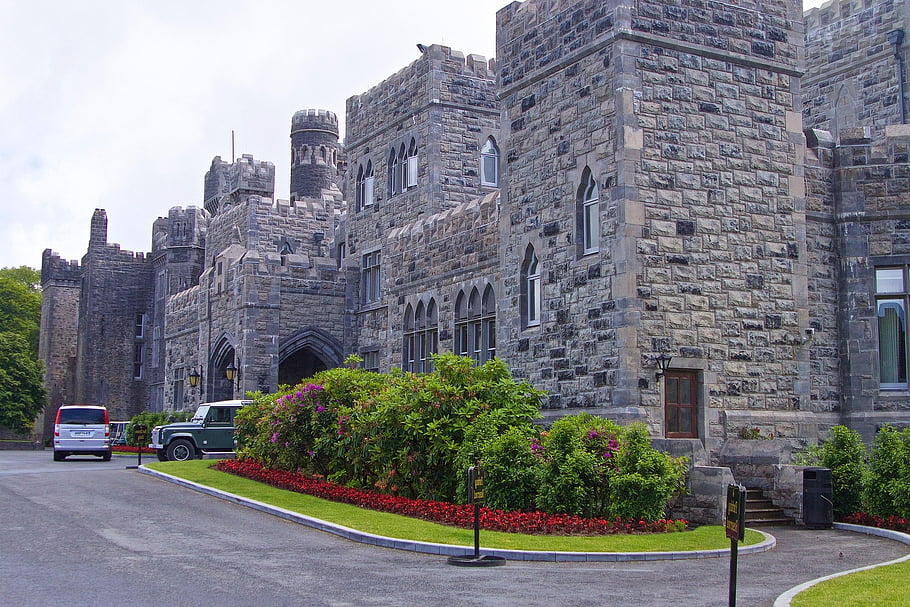 замок, старинный, каменный, архитектура, окна, кустарник, цветник, дом, башня, проход, история -