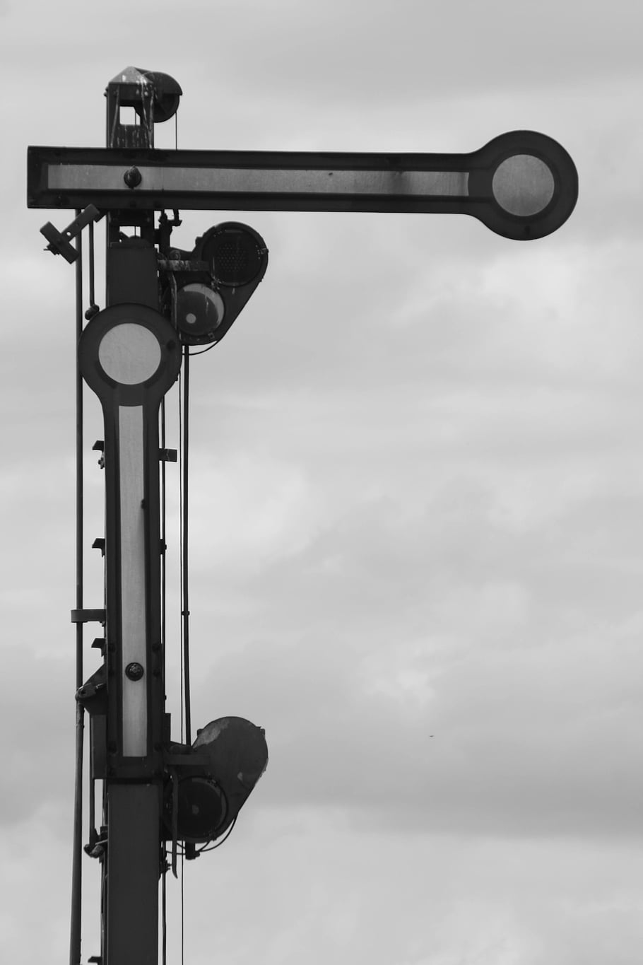 Černý a bílý, železnice, podepsat, signál, železniční signál, semafor, černobílý, signál vlaku, ročník signálu, železniční semafor, černobílé fotografie