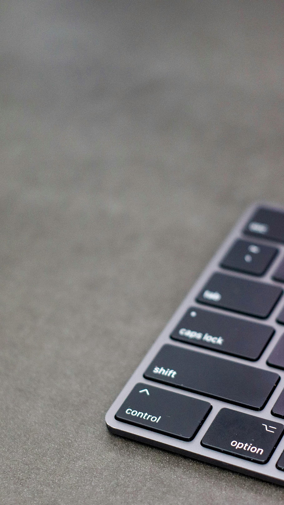 computer tastatur, nærbillede skudt, Slank design, Moderne tastatur, grå overflade, lodret skud, rent design, Caps Lock, skift nøgle, Kontrolnøgle, Option Key -