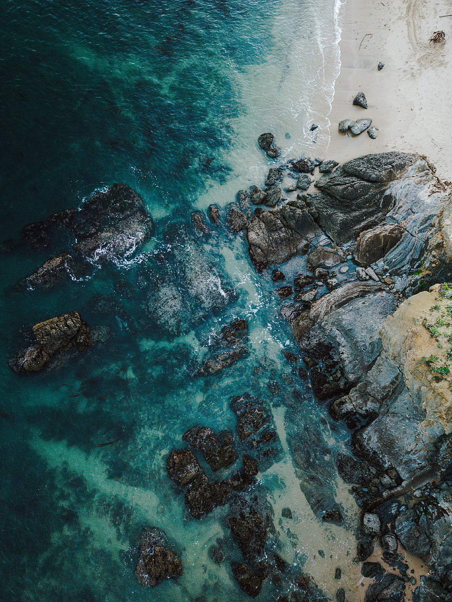 εναέρια θέα, τυρκουάζ κύματα, αμμουδιά, κάτοψη, θαλάσσια ακτή, λατρεις της φυσης, εκπληκτική θέα, φωτογραφία στην παραλία, κύματα στον ωκεανό, παραθαλάσσια τοπία, παραθαλάσσιο τοπίο -