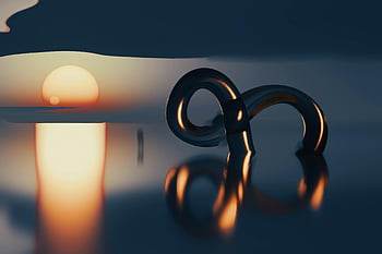 surreal abstract reflections, sunset scene, metal loops, water reflection, abstract art, sunset abstract, surreal art, abstract photography, metal sculpture, water surface, sunset colors