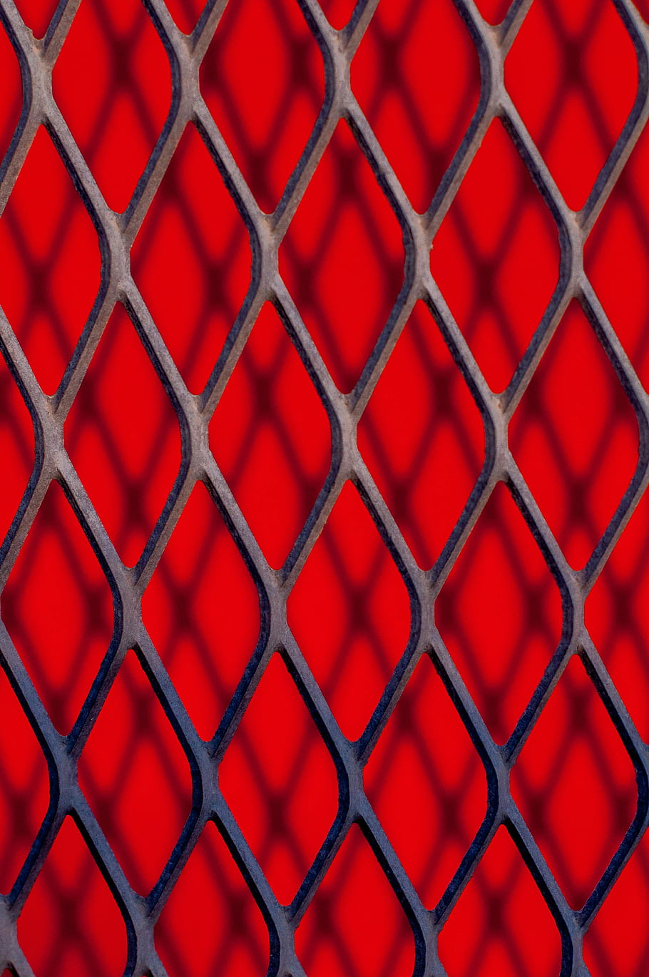 metallic diamond pattern, fence, vibrant red backdrop, abstract texture, red delorean 77, striking abstract, red background, diamond fence, abstract art, red texture, metal fence