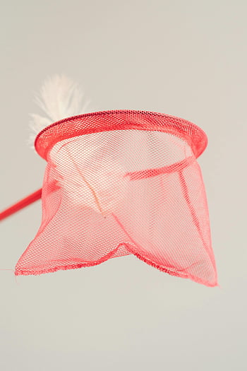 pink net, white feather, red butterfly net, soft neutral background, lightness, mesh net, decorative net, white plume, pink mesh, netting, feather decoration