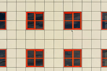 modern building facade, red windows, grid pattern, close-up, architectural design, contemporary architecture, urban architecture, red-framed windows, modern facade, building exterior, grid layout