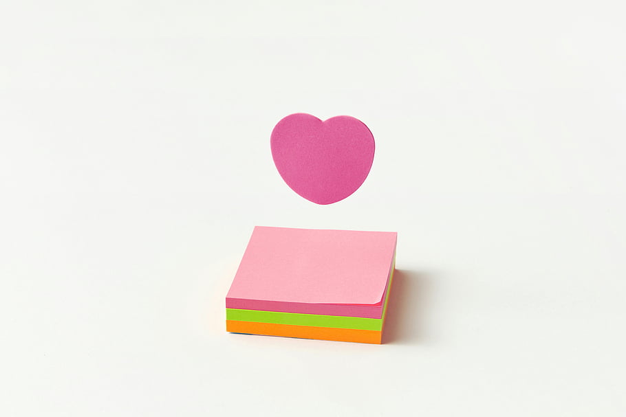 purple heart, sticky note, heart-shaped sticky note, square sticky notes, colorful sticky notes, creative projects, stack of sticky notes, heart sticky note, sticky notes, heart shape, colorful heart