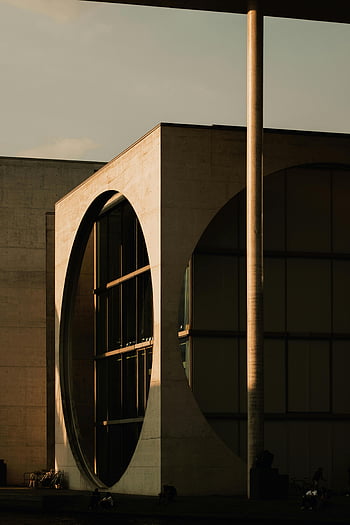 modern cubic design, building structure, circular elements, cubic elements, modern architecture, sunset, striking building, architectural elements, contemporary design, urban architecture, building facade