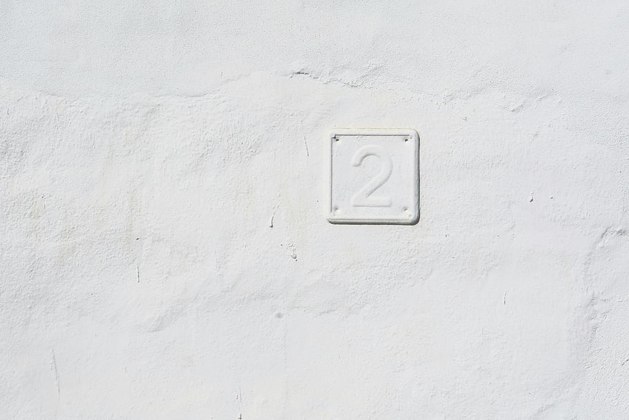 number two, monochrome texture, white wall, minimalist design, embossed number, numeric design, simple pattern, clean surface, modern style, uniform texture, white background