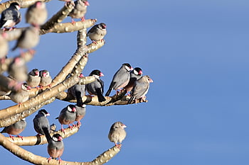 java Sparrows, birds, java Finches, java Rice Sparrows, java Rice Birds, padda Oryzivora, animals, nature, hawaii, kailua-kona, wildlife