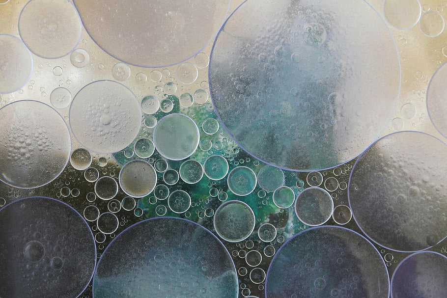 abstract patterns, oil and water, bubbles, close-up, abstract art, macro photography, liquid art, bubble art, blue tones, artistic photography, fluid dynamics