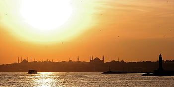 sunset, boats, coast, istanbul, nature, turkey, wonderful Sunset, manzara, deniz, türkiye