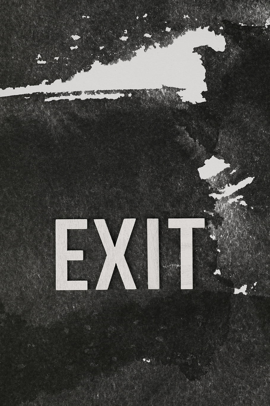 EXIT, dark background, black and white, textured art, creative themes, artistic themes, exit sign, monochrome design, abstract art, grunge texture, typography art