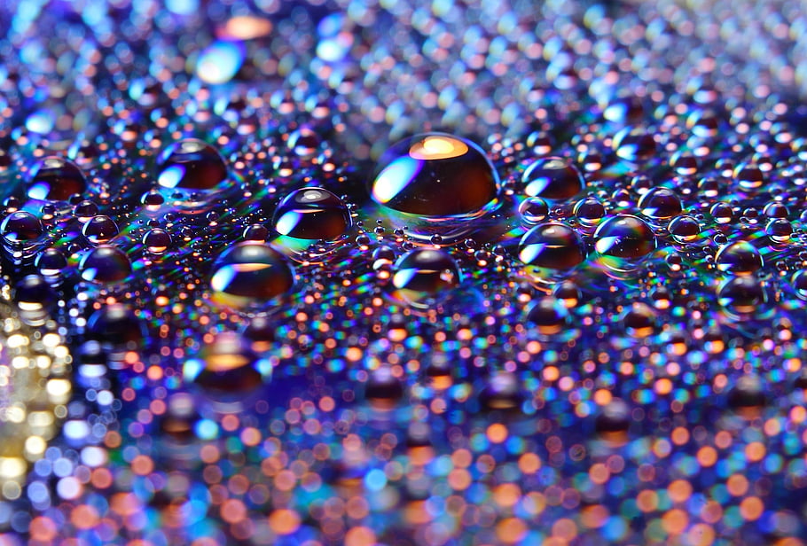 close, water droplets, bokeh photography, abstract, purple, background, texture, template, flooded, rain, desktop