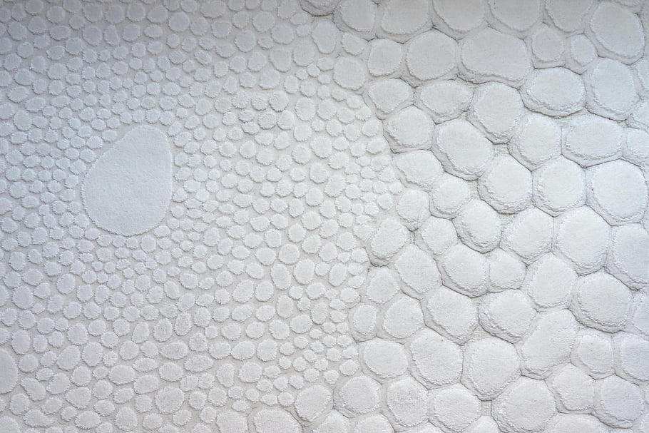 white wall, circular shapes, abstract pattern, textured surface, cell-like design, scale-like design, white circles, abstract art, modern art, wall art, decorative wall