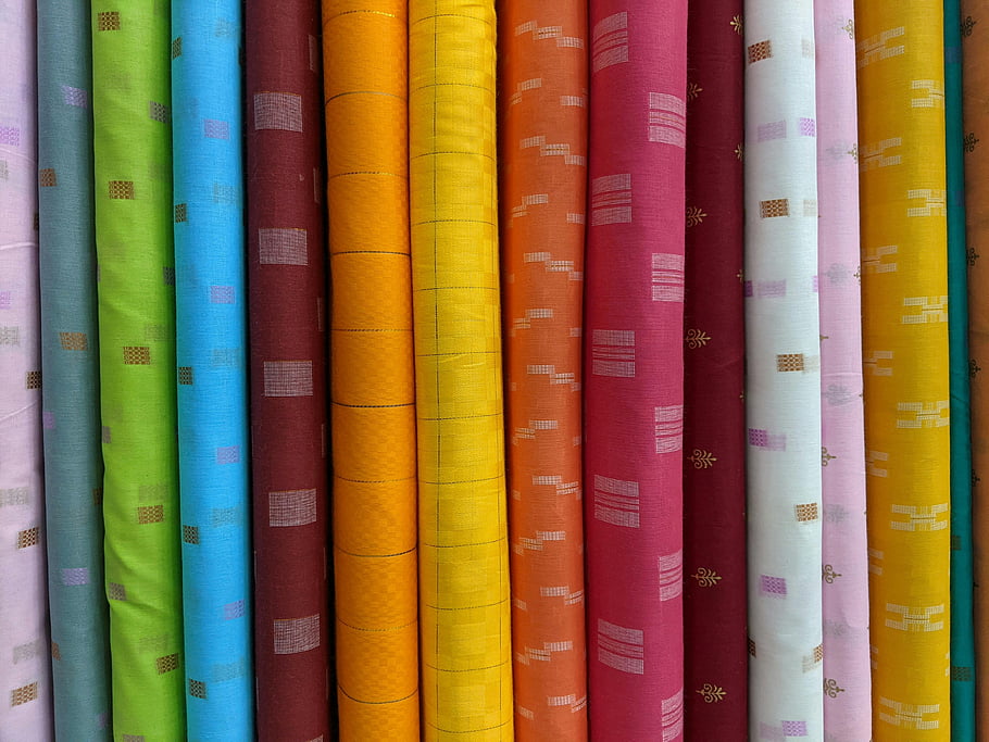 rolls of fabric, multi colored fabrics, assorted fabric rolls, diverse patterns, creative projects, vivid array, fabric colors, fabric patterns, textile rolls, colorful textiles, fabric selection