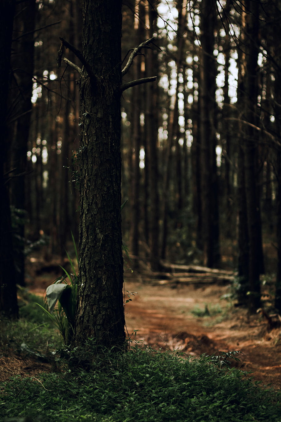 trees in forest, tranquil forest scene, tall tree trunks, rustic path, Panambi Brazil, forest path, natural scenery, tree bark, forest floor, greenery, woodland environment