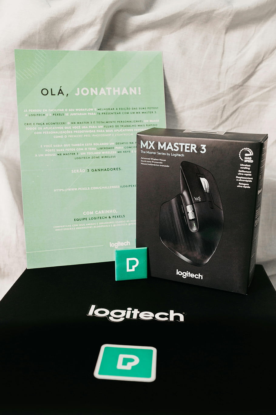 Logitech MX Master 3, henkilökohtainen kortti, moderni tietokoneen hiiri, Logitechin brändäys, tyylikäs esittely, Logitech-laatikko, tietokoneen hiirilaatikko, henkilökohtainen todistus, logitech mx master, edistynyt langaton hiiri, Logitech Master -sarja