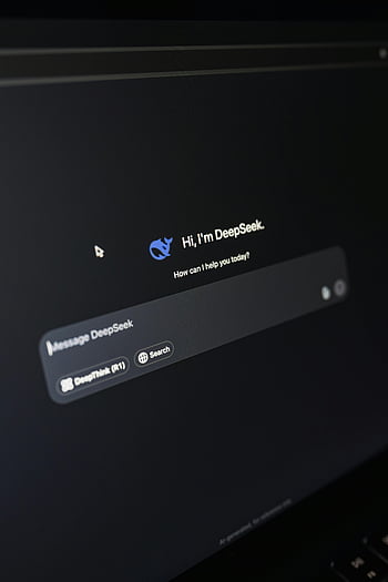 laptop, antarmuka AI interaktif, Aplikasi DeepSeek, AI Chatbot, layar komputer, teknologi, antarmuka pengguna, komunikasi digital, bantuan daring, kecerdasan buatan, Pencarian Mendalam