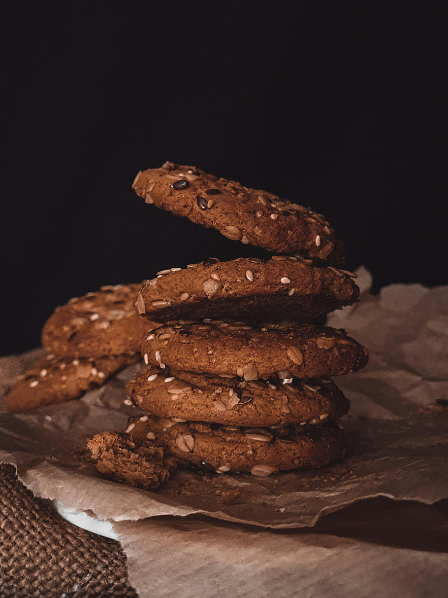 クローズアップクッキー、 積層クッキー、 素朴なクッキー、 種子とナッツ、 デザート愛好家、 羊皮紙、 おいしいクッキー、 種入りクッキー、 ナッツ入りクッキー、 クッキースタック、 素朴なデザート -