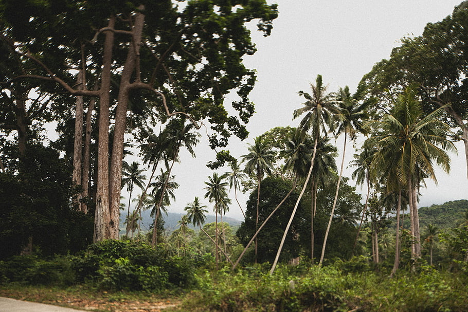 木、 ココナッツの木、 ヤシの木、 熱帯林、 密林、 美しい景色、 熱帯の設定、 森の設定、 緑、 自然、 風景 -