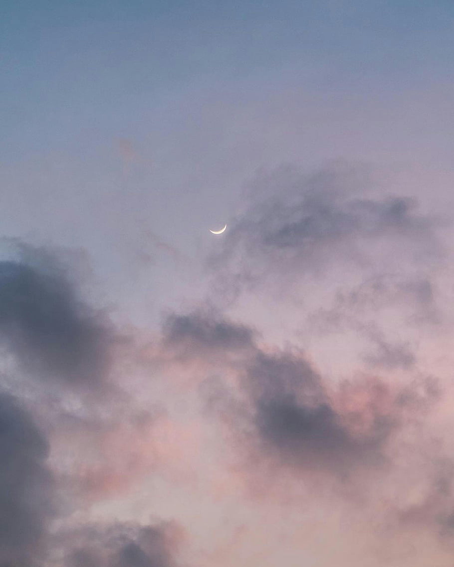 三日月、 夕暮れの空、 カラフルな雲、 穏やかな空、 夢のようなシーン、 柔らかい雲、 夕空、 パステル雲、 月明かりの空、 トワイライトクラウド、 静かな空 -