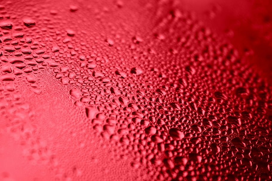 水滴、 赤い面、 マクロ撮影、 露のしずく、 鮮やかな赤、 テクスチャの要約、 閉じる、 抽象的な背景、 水ビーズ、 赤のテクスチャ -