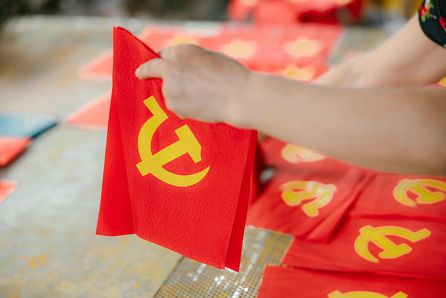 赤い共産党旗、 ソビエト連邦の旗、 屋内設定、 人持株フラグ、 複数のフラグ、 共産主義のシンボル、 ハンマーと鎌、 赤い旗、 フラグ作成、 屋内旗作り、 旗作り -