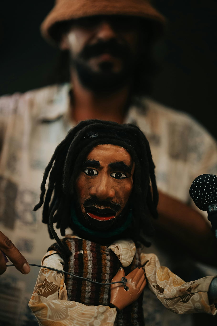 버킷햇을 쓴 남자, 조종하는 꼭두각시, 밥 말리 인형, 인형극, 연극 공연, 험상, 인형, 행위 예술, 예술적 표현, 문화적 표현, 환대 -