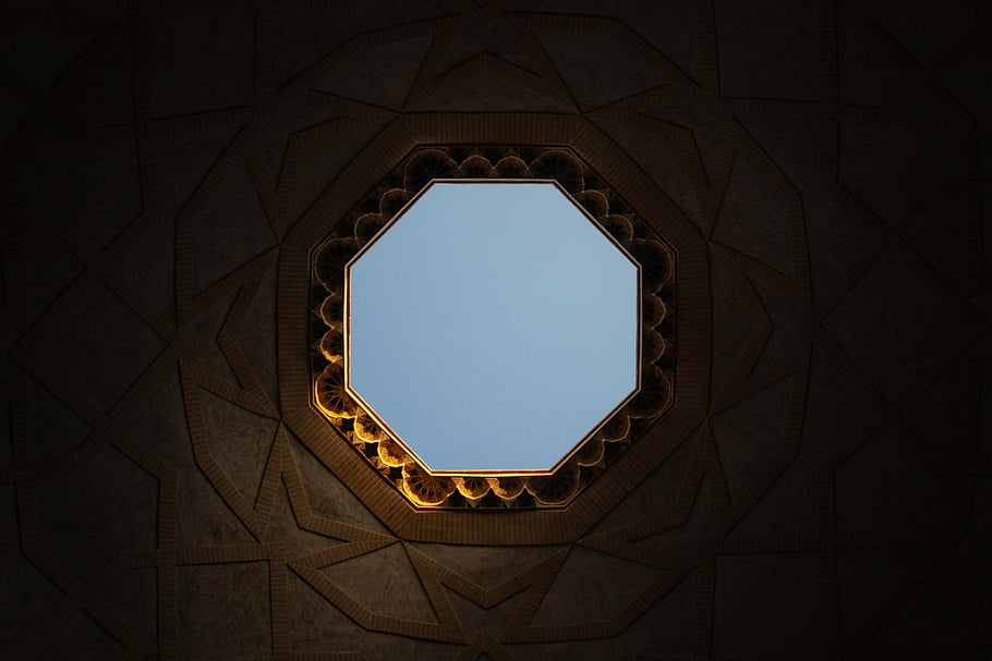 천장에 구멍이 있다, 야즈드 이란, 페르시아 건축술, 기하학적 천장 설계, 천장, 복잡한 디자인, 야즈드 사원, 건축 세부, 천장 구멍, 페르시아 사원, 야즈드 건축