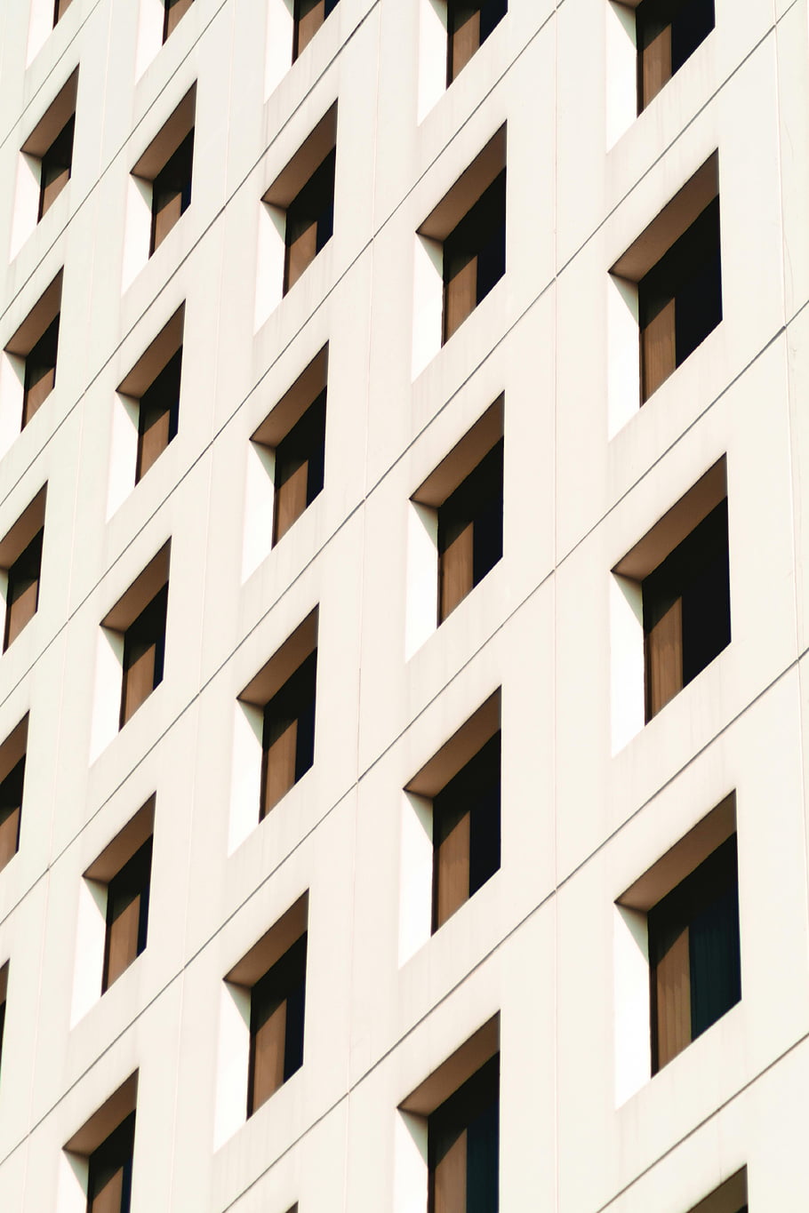 콘크리트 벽, 건물 외관, 정사각형 창문, 반복적 인 패턴, 현대 건축, 도시 디자인, 현대적인 건물, 건축 설계, 창 패턴, 건물 외장, 미니멀리스트 아키텍처