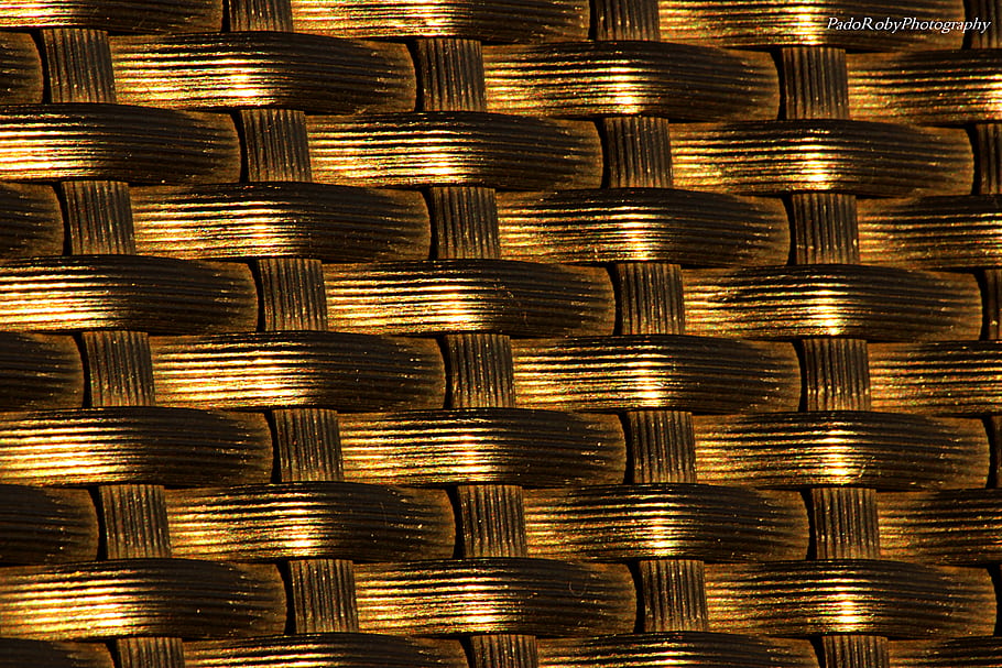 짠 질감, 금색, 닫다, 금속성 광택, 인터레이스 패턴, 자세한 직조, 반사 표면, 복잡한 디자인, 추상적 인 배경, 장인 정신, 사진 예술