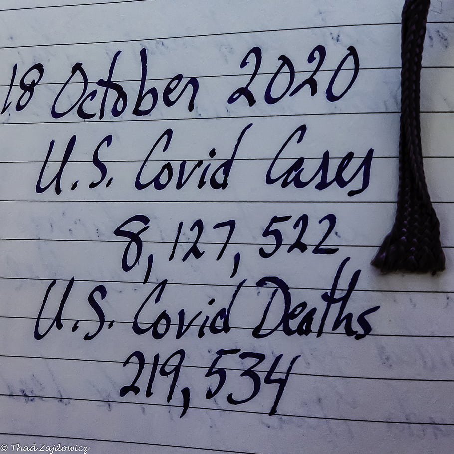 수첩, 필적, 끈, 통계, 번호, 본문, 실내의, 미국 코비드, 사례, 사망자, 서표