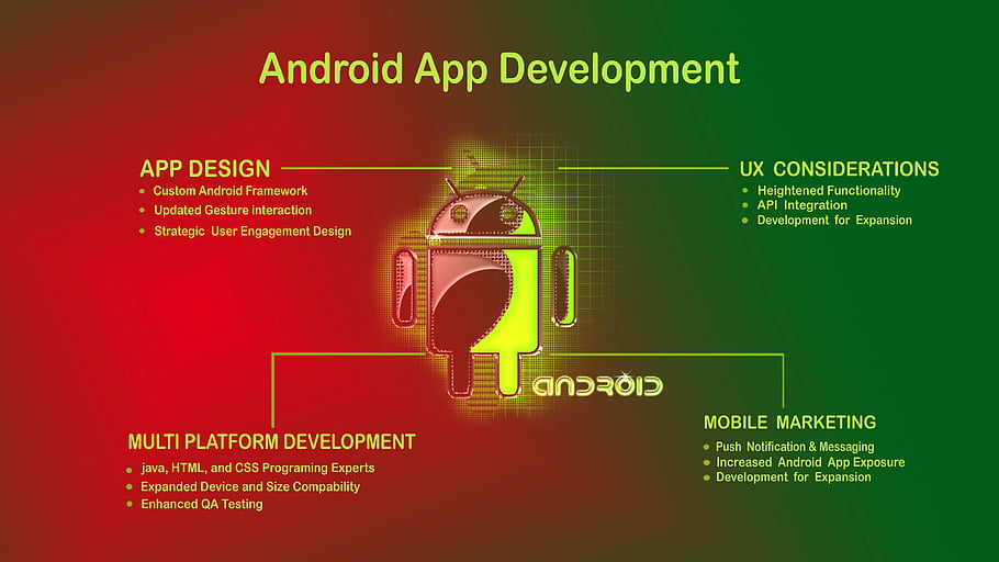 การพัฒนาแอพพลิเคชั่น Android, การออกแบบแอพ, ข้อควรพิจารณา UX, การพัฒนาหลายแพลตฟอร์ม, การตลาดผ่านมือถือ, เฟรมเวิร์ก Android ที่กำหนดเอง, การรวม API, การส่งข้อความแจ้งเตือนแบบพุช, การออกแบบการมีส่วนร่วมของผู้ใช้, ความเข้ากันได้ของอุปกรณ์ที่ขยาย, การทดสอบ QA ที่ได้รับการปรับปรุง -